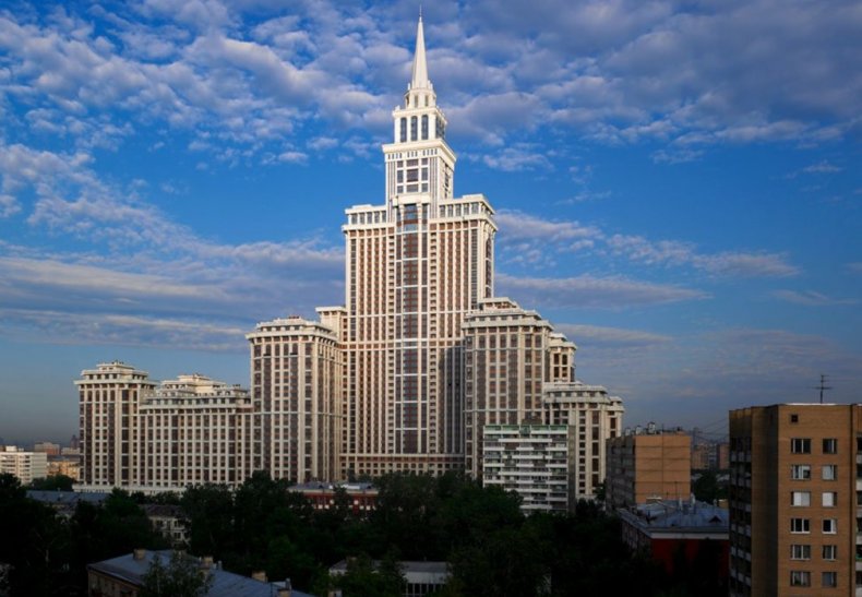 Пятидесятиэтажный жилой комплекс «Триумф-Палас» полностью соответствует своему названию. Величественная архитектура делает этот проект весьма заметным даже на фоне других ярких построек мегаполиса. ЖК рассчитан на 987 семей, предлагая квартиры на три — шесть комнат, а также пентхаусы. Максимальная площадь жилья составляет 400 м² при высоте потолков 3,2 м. Комплекс состоит из девяти секций, объединенных 5-ти этажным стилобатом. Дорогой фасад с витражами и не уступающее ему по уровню внутренне оформление красноречиво свидетельствуют об уровне комплекса. В нем созданы все условия для роскошной жизни.