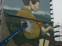 Сейчас работы над картиной уже начаты, окончание запланировано на сентябрь текущего года. На территории данного жилого комплекса также будет создано еще два рисунка.