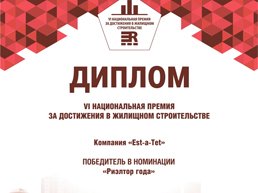 Компания Est-a-Tet, реализующая современные жилые комплексы в столичном регионе и квартиры на вторичном рынке, победила в специализированном конкурсе RREF Awards. Компания признана лучшим риелтором по результатам текущего года.