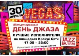 Завершением Дня Джаза в «Крокус Сити» будет выступление Нани Евы, участвовавшей в одном из сезонов проекта «Голос». Напомним, что День Джаза отмечается 30 апреля вот уже четыре года, после того как был учрежден по решению ЮНЕСКО.
