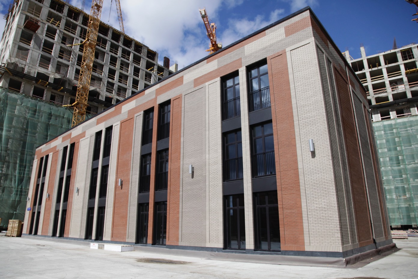 На стройплощадке жилого комплекса стартовали работы по устройству фасадов дома № 1, который представляет собой 5-секционное жилое здание высотой 15 этажей.