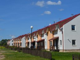 В двух домах III очереди комплекса осуществляются работы по монтированию стропильной системы и кладке черепицы. В одном таунхаусе ведутся работы по возведению и утеплению фасадной части, ещё в одном домовладении продолжаются работы по устройству стен второго этажа из газобетонных блоков.