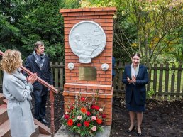 Архитектурное сооружение оформлено в виде стены, напоминающей кремлевскую, и расположено возле часовни.