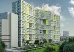 Ввод объекта в эксплуатацию намечен на второй квартал следующего года. На данный момент строители занимаются фасадными работами и остеклением.