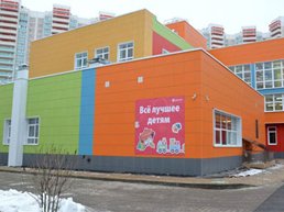 В трехэтажном здании с оригинальными фасадами размещен бассейн и просторный зал для спортивных занятий. Также есть музыкальный зал, оборудованный всем необходимым для занятий, медицинский бокс, комфортабельные помещения для тематических кружков, светлая столовая.