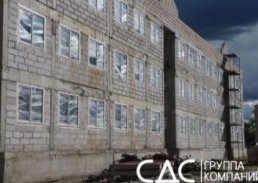 В корпусе № 3 продолжается возведение стен из газобетонных блоков. На текущий момент работы завершены в первой и четвертой секциях. Также выполнено монтирование оконных конструкций, продолжается обустройство кровли.