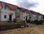 В двух домах III очереди комплекса осуществляются работы по монтированию стропильной системы и кладке черепицы.